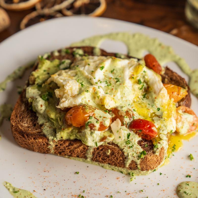 sourdough pumpernickel swirls, avocado spread, roasted tomatoes,